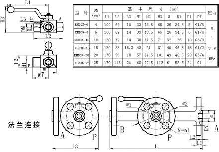 KHB3K型高壓三通球閥是依據(jù)國外資料研制而成,主要用于液壓管路中控制油液、氣的流通、流向和截止。本系列高壓多路球閥具有流阻損失小、密封性能可靠、操作方便、外觀精美等特點。本系列多路球閥主要由閥體、球體、閥桿、手柄和密封裝置等組成。閥體采用鋼質(zhì)鍛件,表面鍍鉻。同時也提供不銹鋼球閥。本系列高壓球閥主要有二種連接方式:內(nèi)螺紋連接、法蘭連接