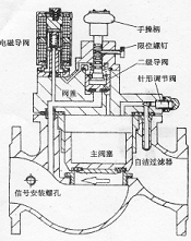 3)、閥內采用先進的自潔式過濾器機構,可清潔進入導閥內的控制介質,以保證導閥的正常工作,降低了對工作介質清潔度要求,并具有過濾器自身清潔之功能(Ф25、Ф50為濾網結構)。